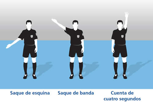 Si el tiro es directo, el árbitro solo señala la dirección con el brazo extendido y paralelo al suelo. No se señala la falta con el dedo hacia arriba