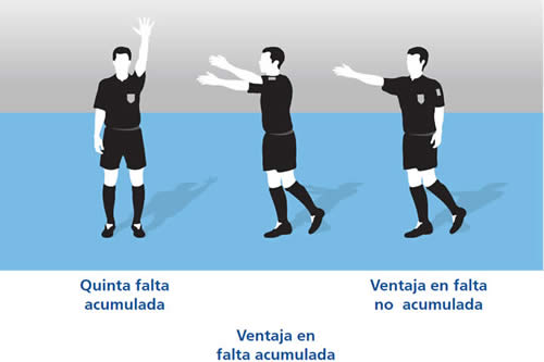A partir de la quinta falta, los árbitros sancionarán la falta sin aplicar la ventaja, excepto en el caso de ocasión manifiesta de gol.
