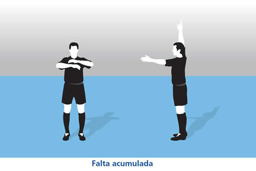 No todas las aplicaciones de ventaja son acumulativas Solo se señalan al cromometrador (rotación de brazos) las faltas acumulativas. Serán faltas acumulativas, aquellas de aplicación de ventaja, en las que, de haberla señalado, parando el juego, se hubiera reanudado con tiro libre directo.